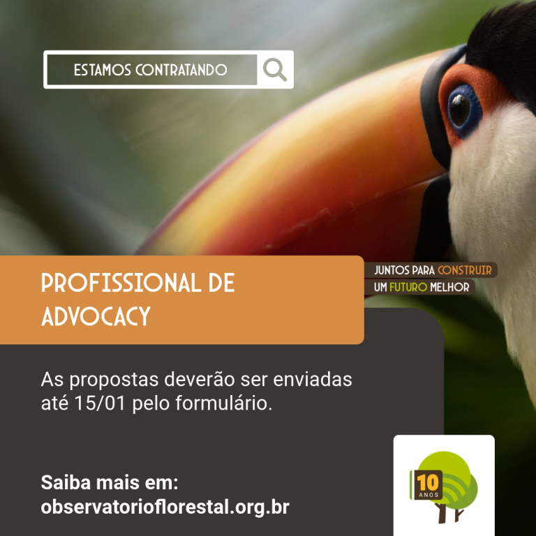 O Observatório do Código Florestal (OCF) e a Amigos da Terra – Amazônia Brasileira estão em busca de um profissional de Advocacy para apoio na execução de atividades do projeto ‘Coordenação política e advocacy para o alcance das metas de agenda climática e da proteção florestal’.