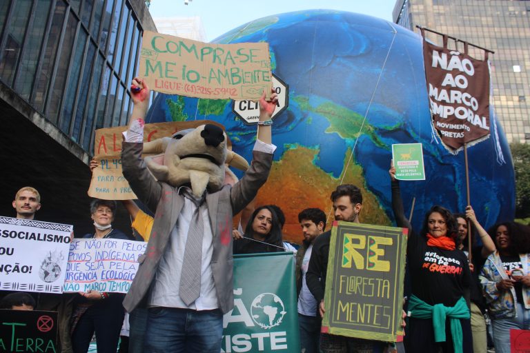 20 de junho – Neste domingo (18), a Avenida Paulista, em São Paulo, foi palco de mobilização contra o desmonte socioambiental promovido pelo Congresso Nacional. Centenas de pessoas se reuniram em resposta a aprovação e ao andamento de Projetos Legislativos (PLs) e Medidas Provisórias (MPs), que representam um impacto negativo para o meio ambiente, para os povos originários, e consequentemente para toda a população. Portando cartazes, faixas e bandeiras, a população pediu por florestas em pé, conservação da água, justiça climática e demarcação de territórios indígenas.
