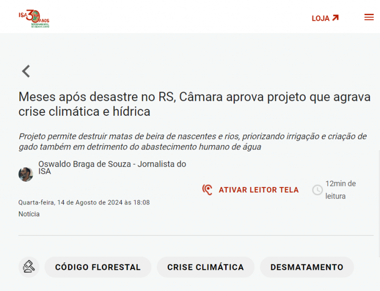 [Instituto Socioambiental] Meses após desastre no RS, Câmara aprova projeto que agrava crise climática e hídrica