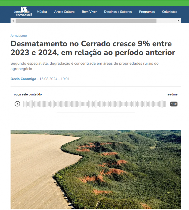 [Nova Brasil] Desmatamento no Cerrado cresce 9% entre 2023 e 2024, em relação ao período anterior